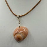 A smooth, rounded shell pendant that reflects the steady movement beneath calm waters.