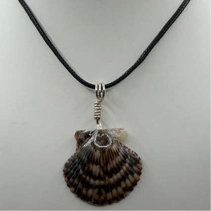 A grounded scallop shell with muted tones, echoing the calm found when the sea rests and the tide is still.